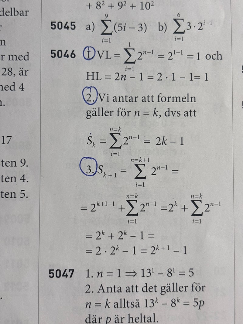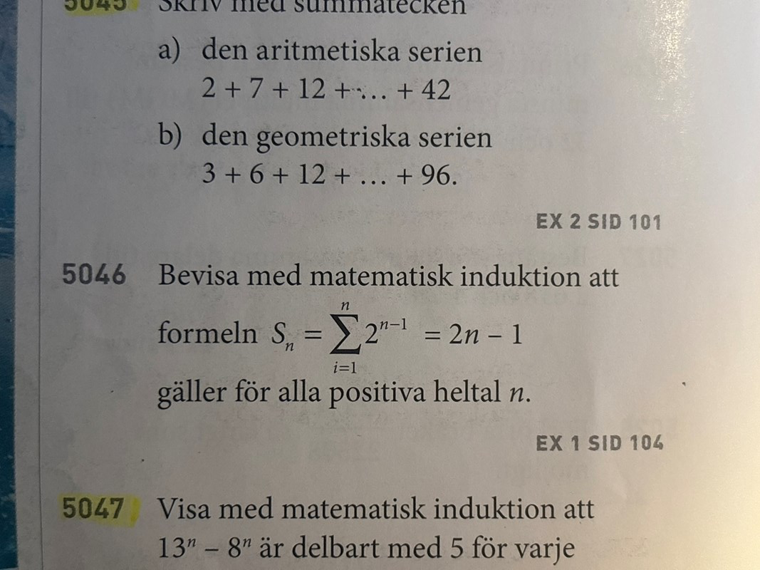 Det ska stå 2i-1 efter summatecknet och 2n - 1 i högerledet.