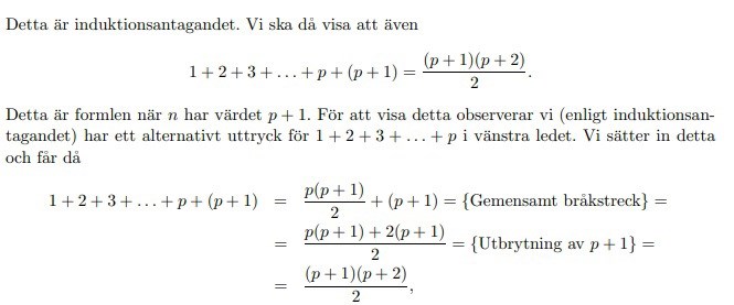 När vi sätter in så fås talföljden ovan. Aneldningen till att vi får är ju för att om du adderar 1 på den största termen så fås ju .