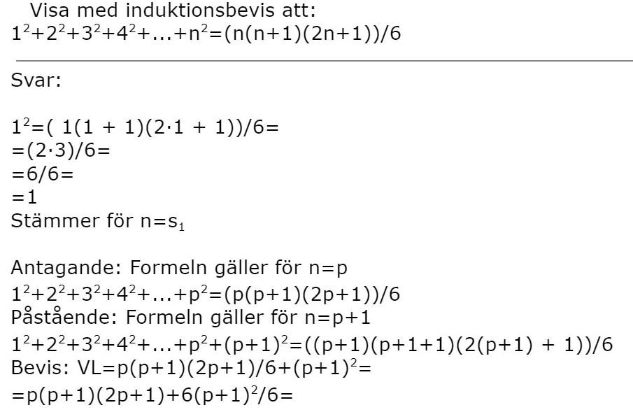 Jag vet inte om det är så att jag har glömt delar av tidigare mattekurser, men jag förstår inte hur (p(p+1)(2p+1)+6(p+1)2)/6 blir ((p+1)p(2p+1)+6(p+1)/6
