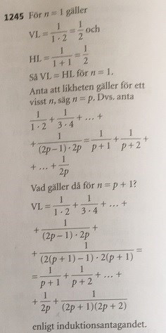 Facit och jag är överens om att induktionsbas n=1 är OK.