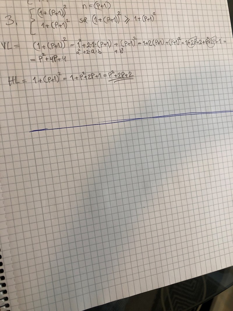 Jag har försökt flera gånger få veta varför VL blir fel vid förenkling torts att jag använder kvadreingsregeln på rätt sätt.. Det ska bli P^2+2p+4 och inte P^2+4p+4. Jag bifogar bilder på uppgiften och min lösning.