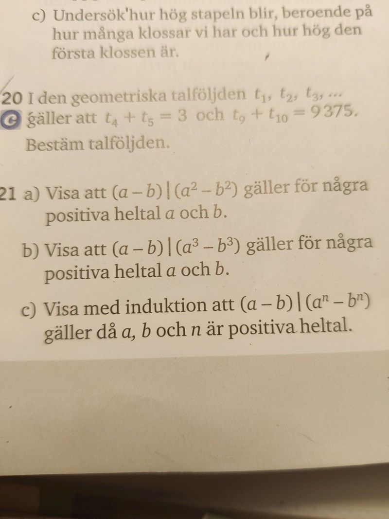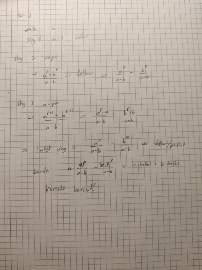 (Frågan är om inte det är enklare utan induktion. Summera den geometriska serien med kvoten x=a/b , Men här var ju induktion anbefallt)