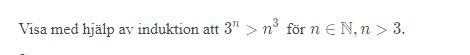 Ett induktionsbevis går ju ut på att man antar att en utsaga gäller för n=p och bevisar att då gäller den för n=p+1. Och det är det som görs ovan. Antagandet är att 3p  > p3 och så visas att