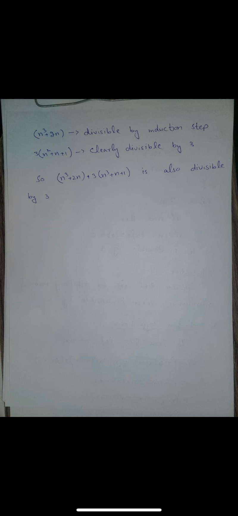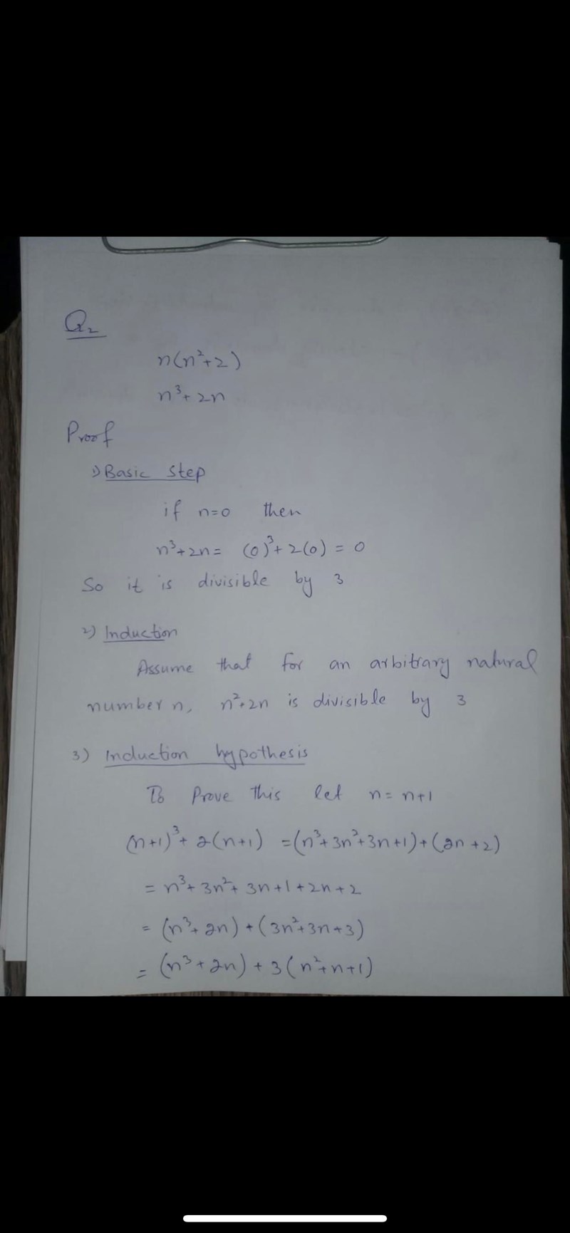 Nu ser det rätt ut i princip. Men man ska inte skriva "let n=n+1" som i det här beviset. Jag förstår vad som menas, men det är bättre att skriva "suppose Pn is true for n=k" och sedan "let n=k+1" som i det förra beviset.