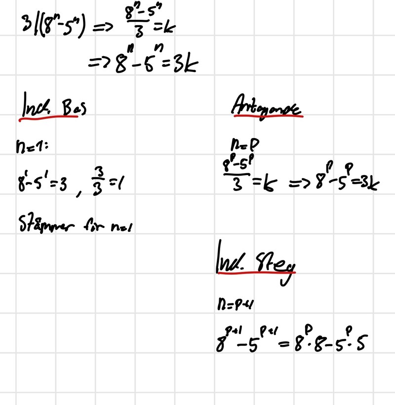 8p+1-5p+1=8·8p-5·5p=(5·8p-5·5p)+3·8p=5(8p-5p)induktionsantagande+3·8pinnehåller faktorn 3