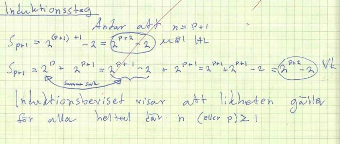 Till sist gjorde jag induktionssteget, att n=p+1, som blev såhär:
