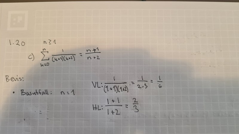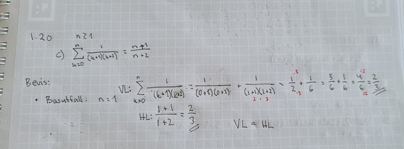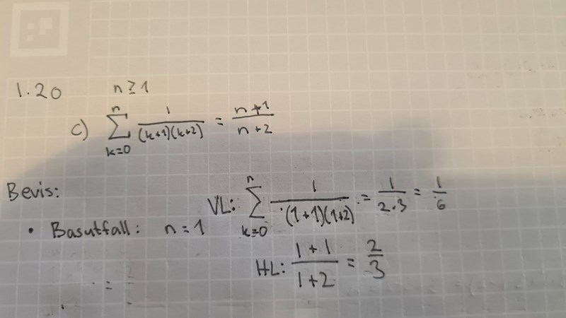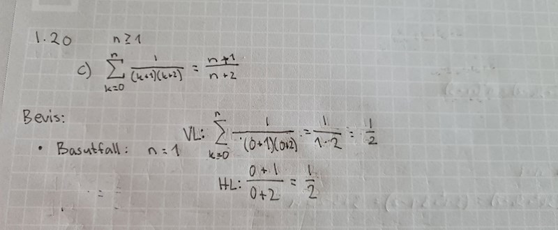Inte riktigt. Nu har du korrekt gjort uträkningen för basfallet n = 0, som faktiskt fungerar fast det stod i uppgiften att vi skulle börja på n = 1.