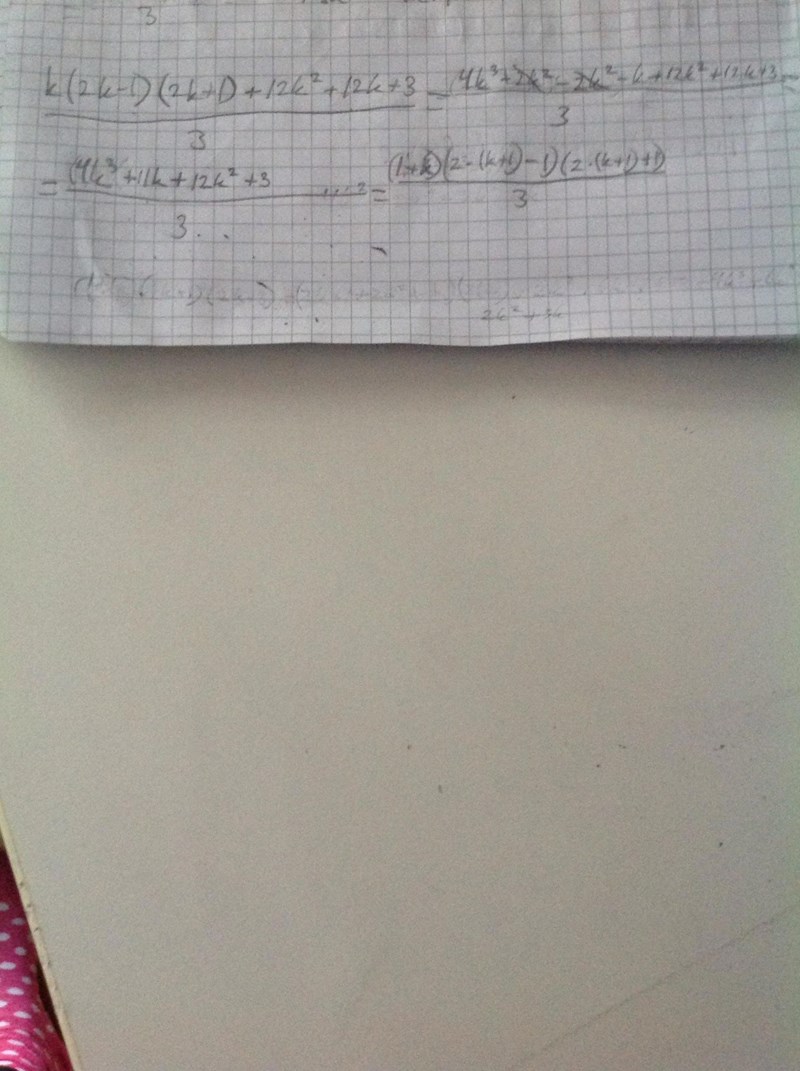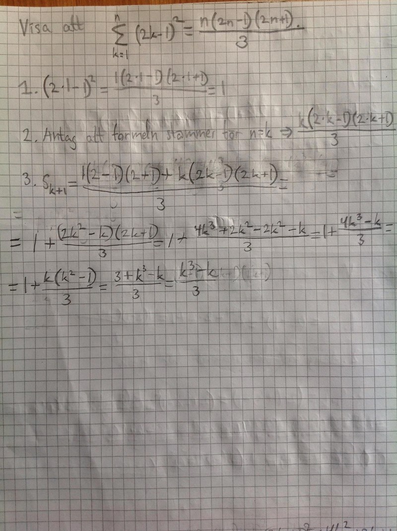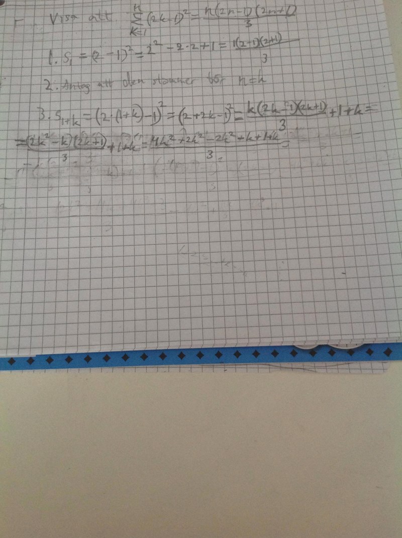 Det är lite svårt att följa hur du har gjort. Vad får du för uttryck för n = k? Vad händer när du adderar ihop med ?