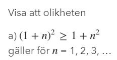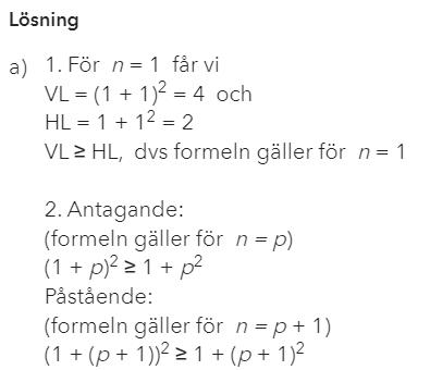 I beviset skrivet de bara om vänsterledet enligt vad jag skrev i mitt förra inlägg. Det som är konstigt är att de skriver ut olikheten som vi försöker bevisa som om den gäller. Har man en olikhet och gör den större sidan mindre så är det möjligt att olikheten inte längre gäller, som du korrekt påpekar. Det går inte att veta utan ytterligare information. I lösningen visar det sig dock att 4 >= 2 även fast man gjort sidan med 4 "mindre" med induktionsantagandet, så därför visar det sig att olikheten fortfarande stämde i just detta fall.