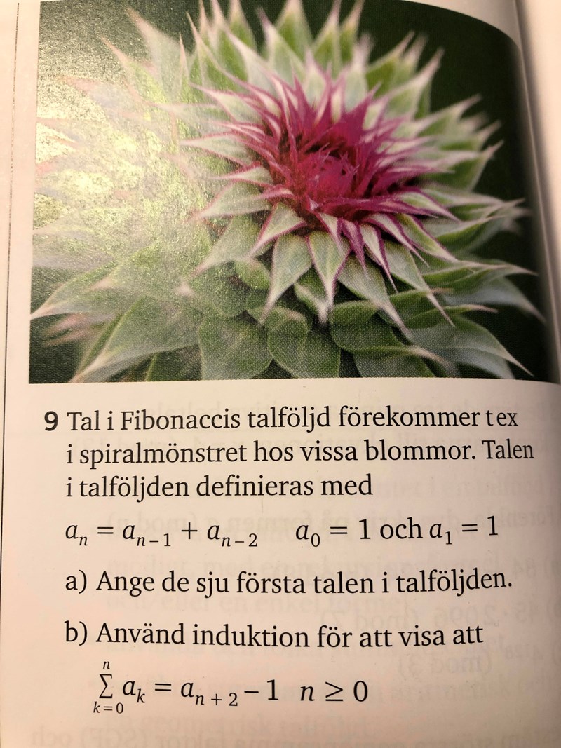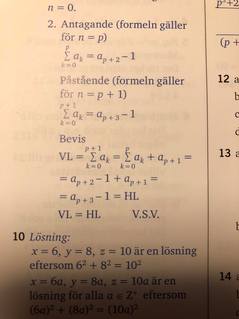 b uppgiften, jag förstår inte bokens motivering. Det stämmer för n=0, men om jag sätter in n=2 till exempel, blir det inte olika i VL och HL? Eller måste jag skriva om summatecknet till summaformeln för att det ska fungera? Jag tänkte det först men i facit ser det inte ut som att det är så de räknat ut summan men jag antar att man måste göra det? Dessutom i facit så har de skrivit;