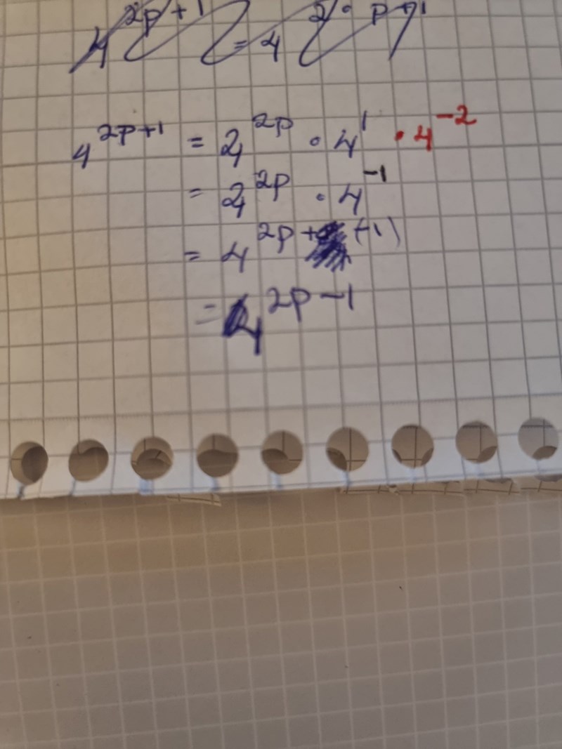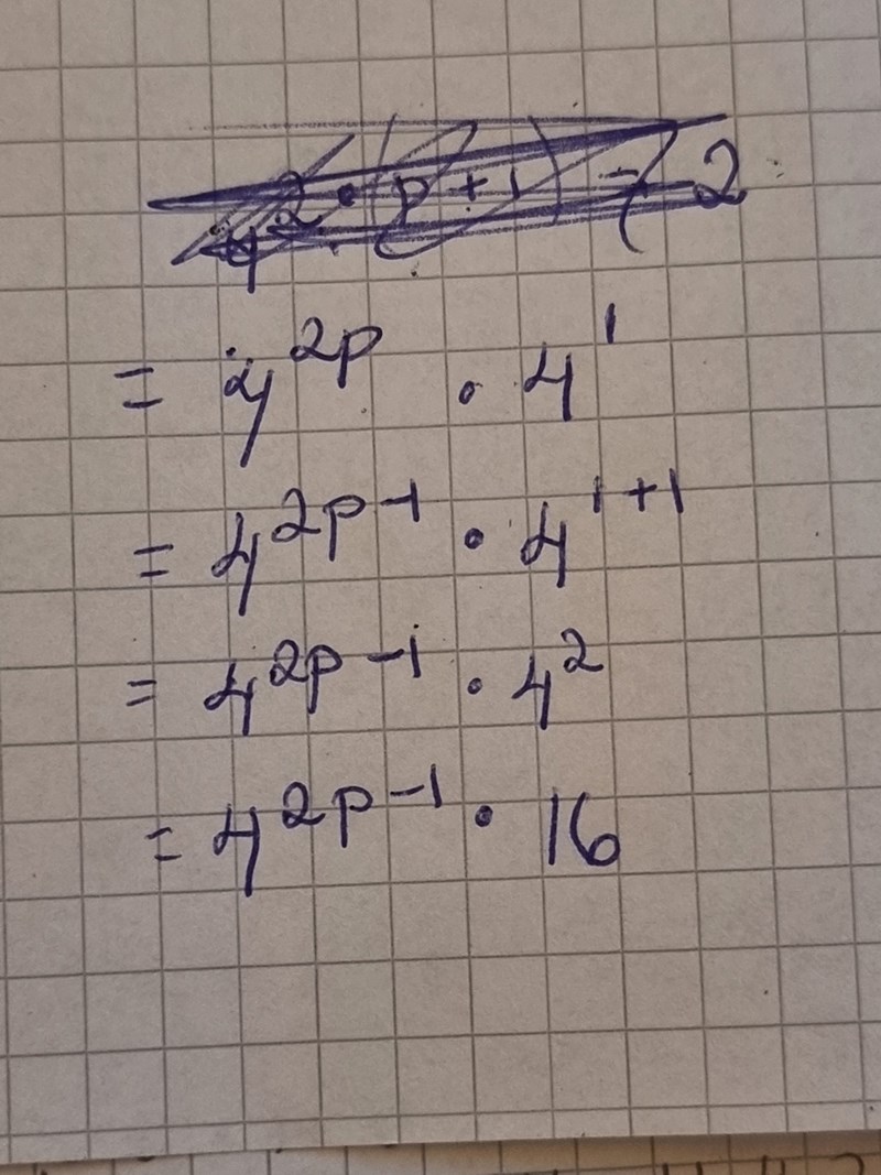 Hänger inte med på hur 4^2p+1 blir 16 × 4^2p-1 annars förstår jag hur jag ska lösa resten😅
