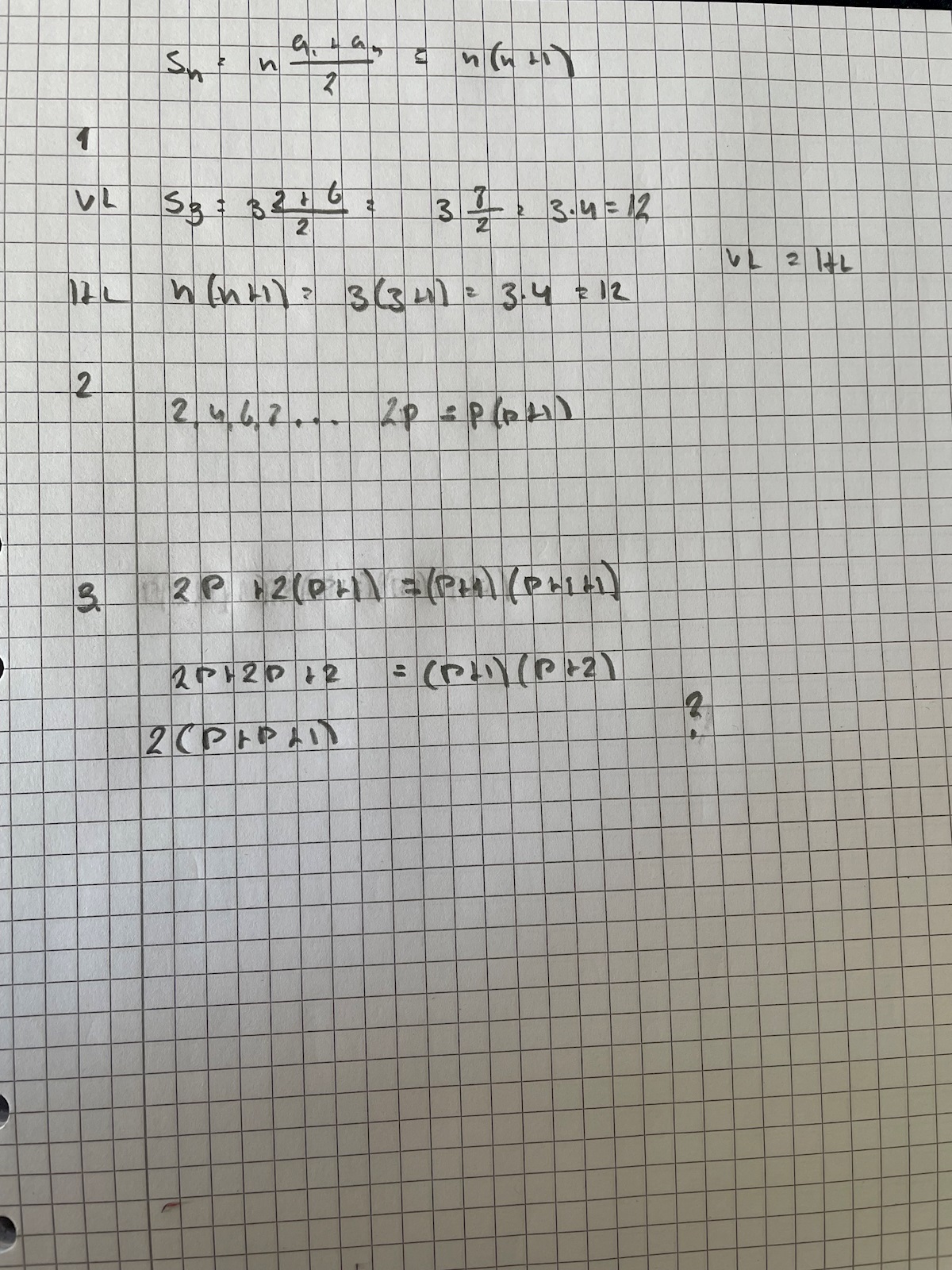 I ditt steg 3 är det inte 2p du ska börja med, det är hela summan, alltså p(p+1).