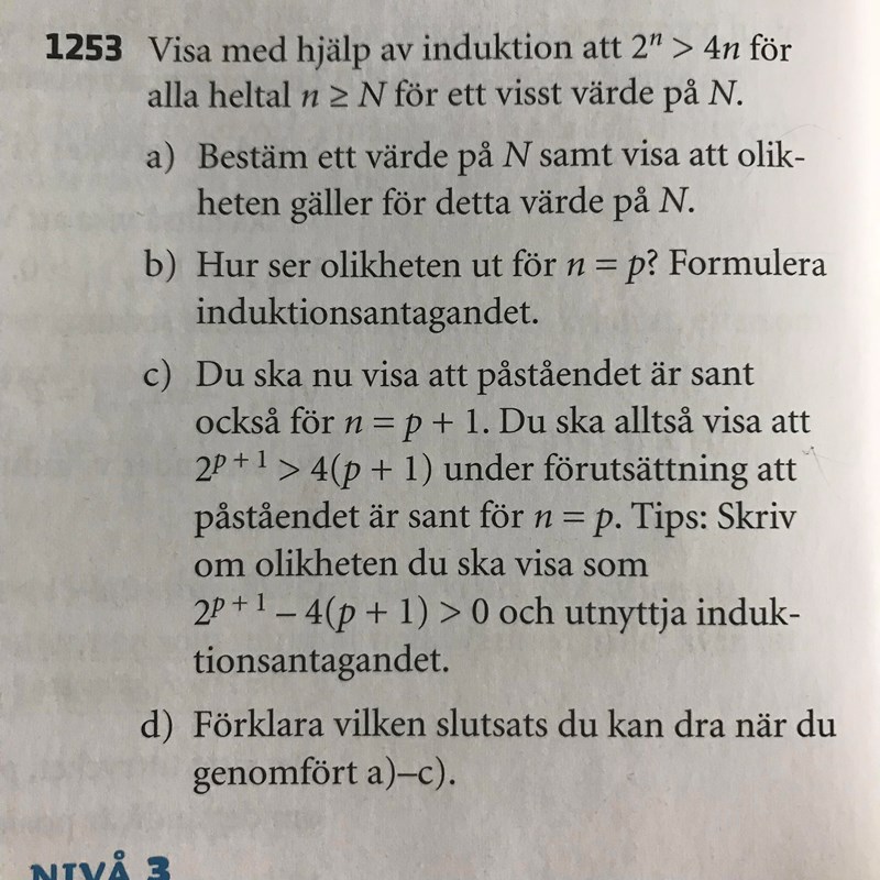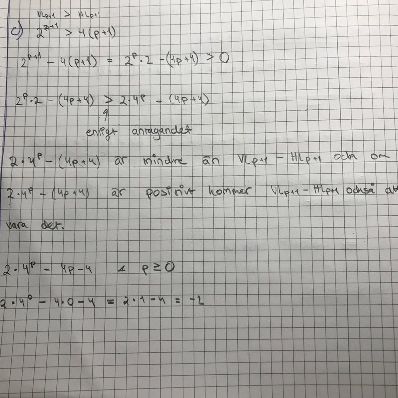 Hej, jag får lite problem med mitt induktionssteg och jag vet inte vad det är jag ska rätta till så att det blir bra. Det gäller c) uppgiften.