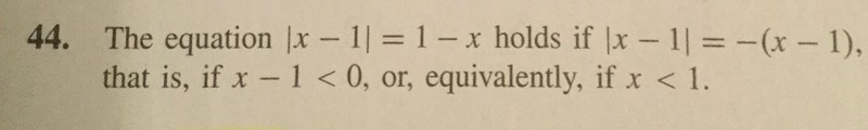 Det som står efter "Om x < 1" visar väl att ekvationen är sann då?