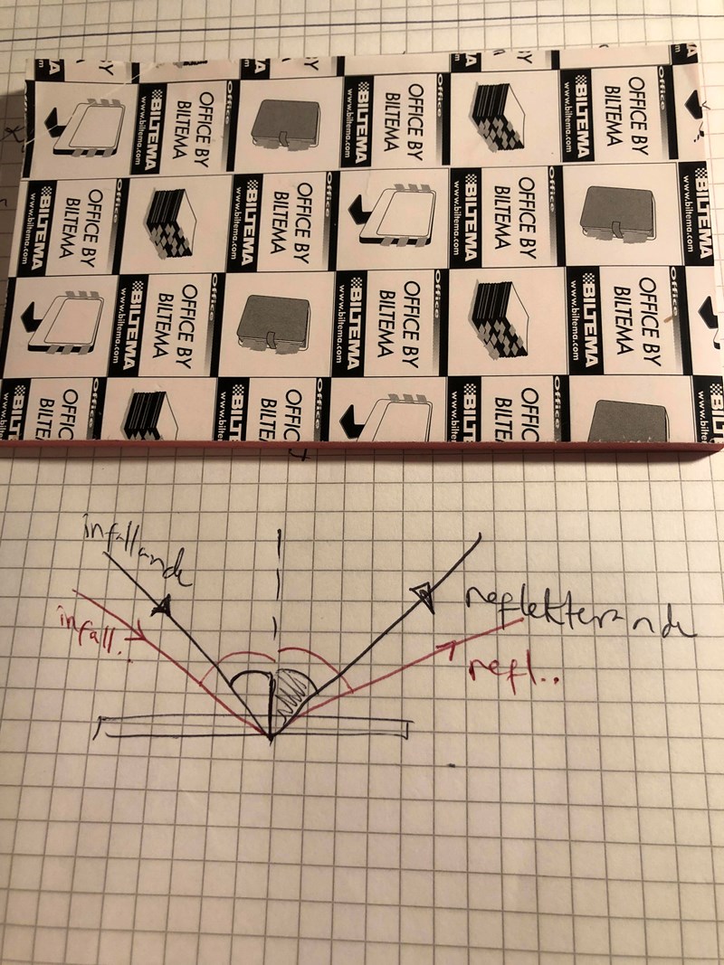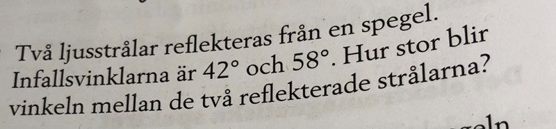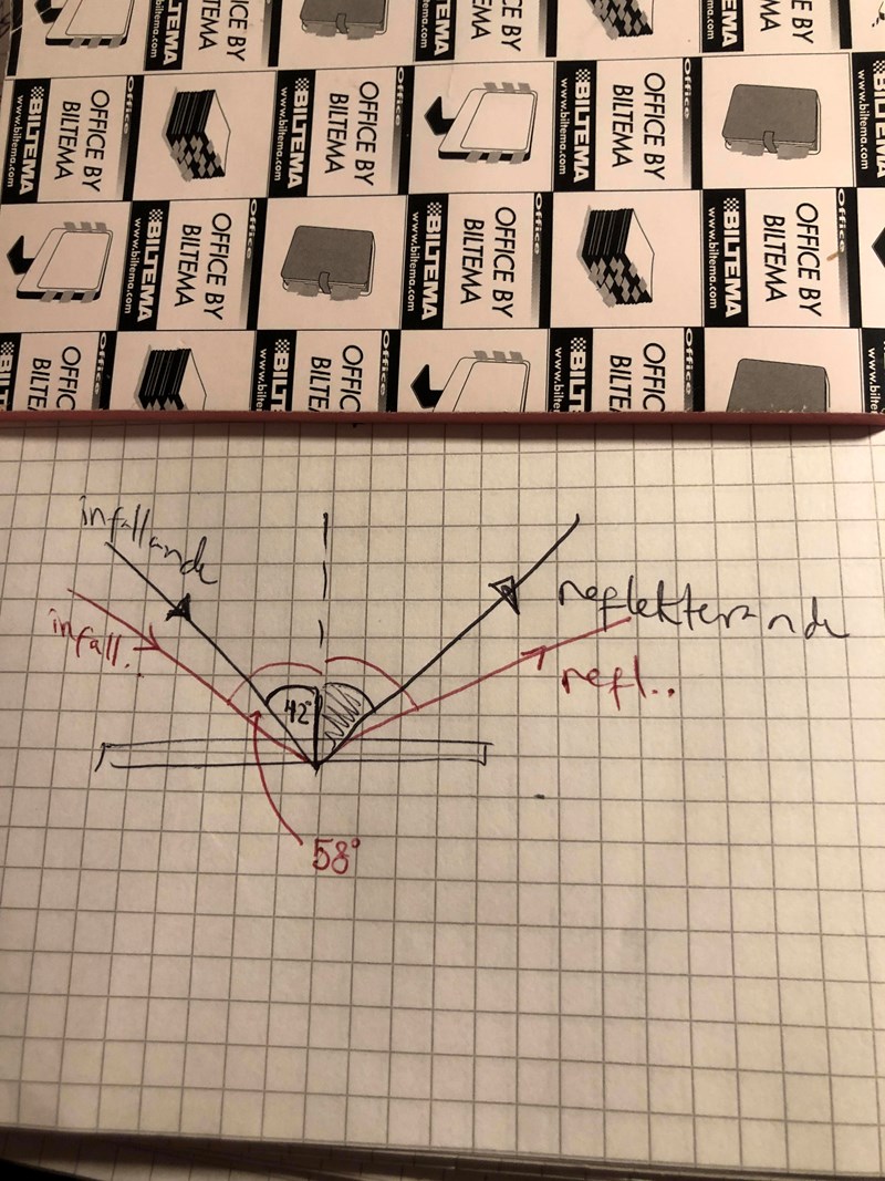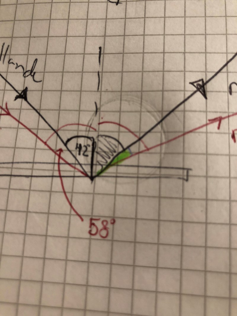 Vadå, bildas det en vinkel mellan de två olika reflekterande vinklarna dvs 58-42=16?