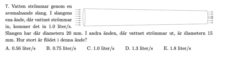Inflödet av vatten är 1.0 liter/s. Vad är utflödet?