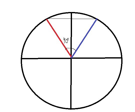 I denna bild så är v mellan 0 och 90 och då kan aldrig den röda och blå vektorn få samma y värde.