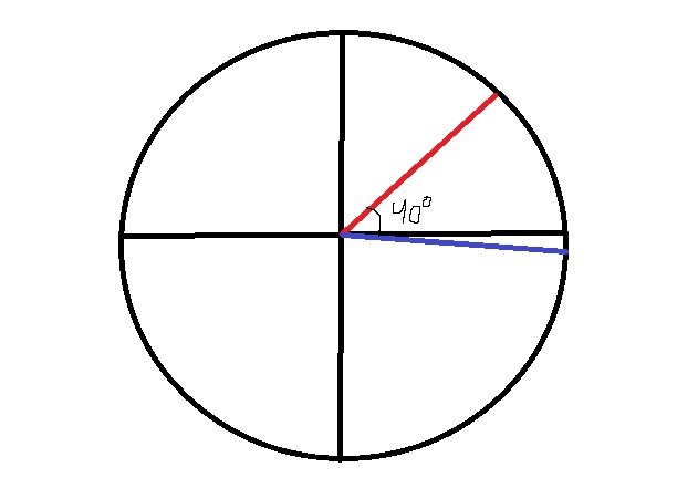 I båda bilderna representerar den röda vektorn sin(v)och den blå sin(v-40o)