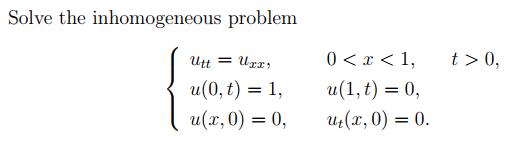 Är det någon som kan förklara varför systemet nedan är inhomogent? Så som jag har förstått det är ett problem inhomogent endast om det finns en extra funktion i "första raden", så att man kan skriva utt-uxx=f(x,t), vilket inte är fallet här...