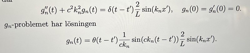 Hej! Har fastnat helt på partikulärlösningen för denna, vad för ansats gör man när inhomogeniteten är ett dirac-delta?
