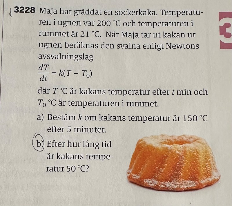 Hej! Jag förstår inte hur jag ska gå tillväga med b)-uppgiften? Jag har löst a) och fått att den allmänna lösningen är: y = 179ekt + 21