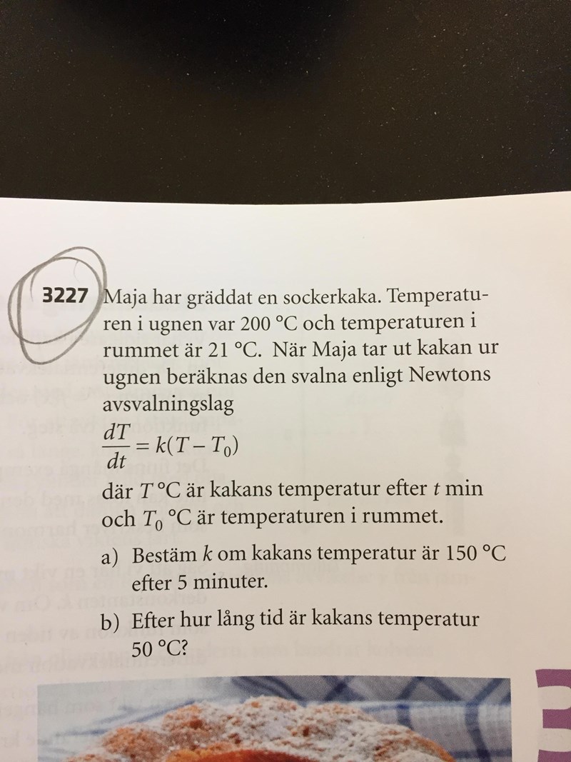 Därefter kan vi lösa ut k genom att sätta in det som står angivet i a) uppgiften.