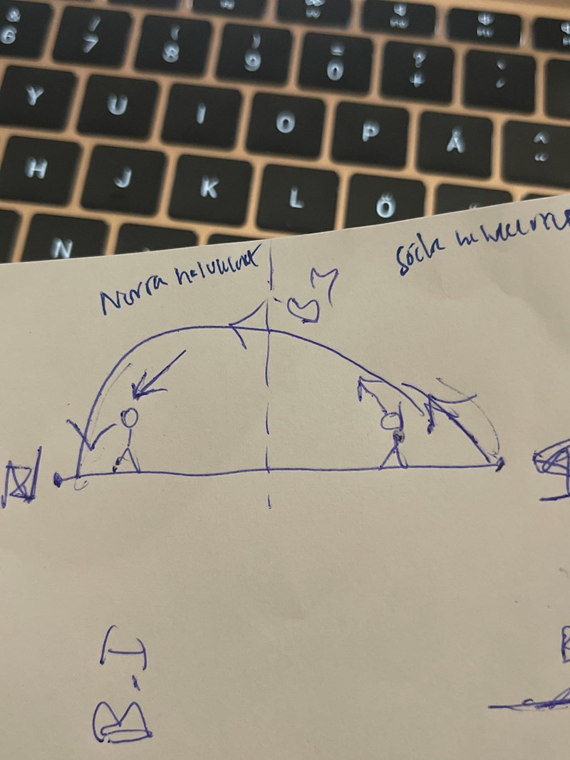 Jag skrev fel här, jag menar snett upp från jordytan på södra halvklotet.