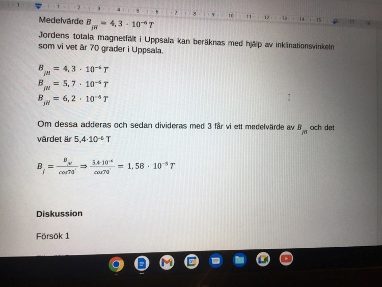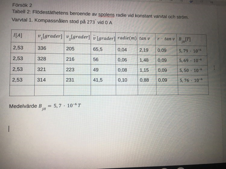 låter 5,26*10^(-5) T rimligare för totala fältet i Uppsala? För nu har jag räknat om bjh och alla hamnar runt 1,8*10^(-5).. om jag använder formeln med 4pi