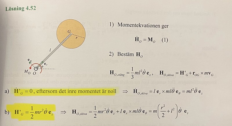 Jag förstår inte det som jag markerat med gult. Vadå inre moment? Hur vet man att detta är 0 när skivan roterar med inte när den är stilla?