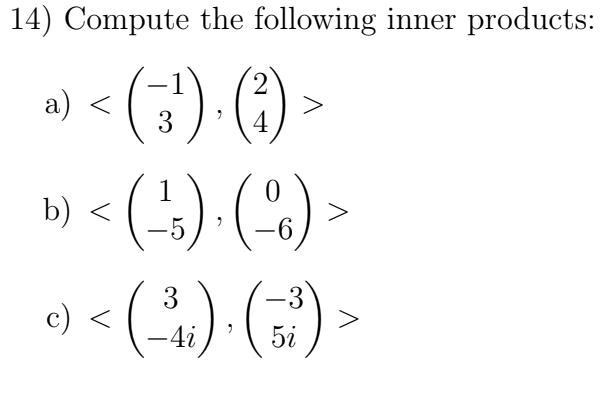 Den här frågan innehåller två saker du antagligen inte är bekant med: generella inre produkter (som man kallar för skalärprodukt innan) och komplexa vektorrum.