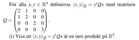 Men har svårt att tolka informationen. Jag vet att <x,y> är beteckningen av den inre produkt av vektorerna x och y, men vad innebär Q i detta sammanhang? Det vill säga <x,y>Q?