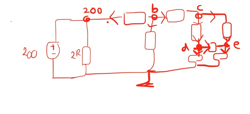 Okej så man tänker att spänningen e=200 ska fördela sig lika på 4R från T? som är 100, men med detta tänk så får man inte rätt ik --> vilket inte ger rätt Rth. Hur fick examinatorn Rth till 3R från ingenstans?