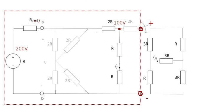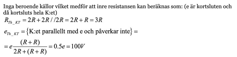 itter skrev:Okej så man tänker att spänningen e=200 ska fördela sig lika på 4R från T? som är 100, men med detta tänk så får man inte rätt ik --> vilket inte ger rätt Rth. Hur fick examinatorn Rth till 3R från ingenstans?
