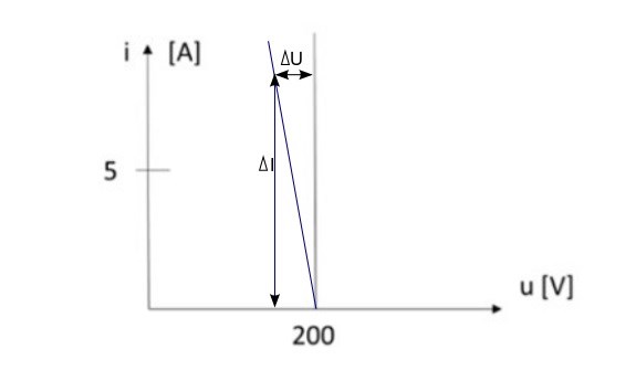 Jag har ritat in en linje för en spänningskälla där Ri är större än noll. Lutningen på den linjen är Ri.