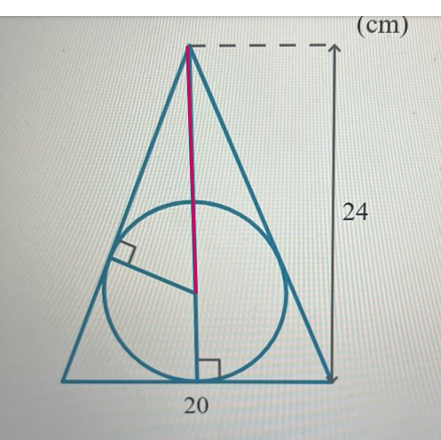 Inskriven cirkel i likbent triangel, bestäm cirkelns radie