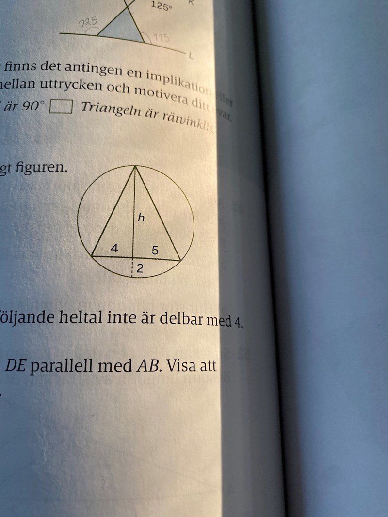 En triangel är inskriven i en cirkel enligt figuren. Bestäm triangelns area.