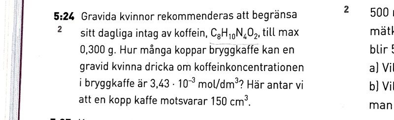 För att beräkna substansmängden koffein i en kopp kaffe behöver du veta koncentrationen och volymen.
