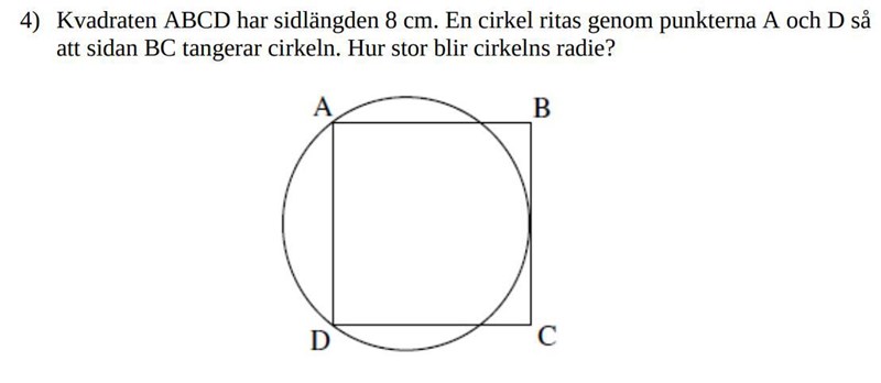 När du tagit reda på triangelns sidor kan du skala upp kateterna med 4:a och lösa ut radien/ hypotenusan. Svaret blir då att radien=5