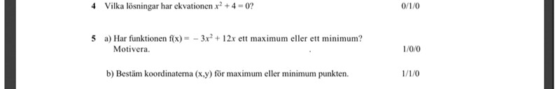 b-uppgiften gäller att bestämma koordinaterna för max- eller minpunkten hos funktionen .