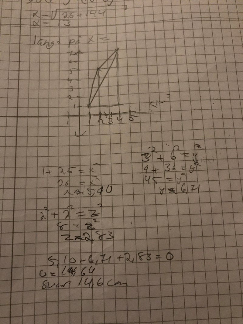 Översta vänstra ekvationen ska vara 1^2 + 4^2 = x^2.