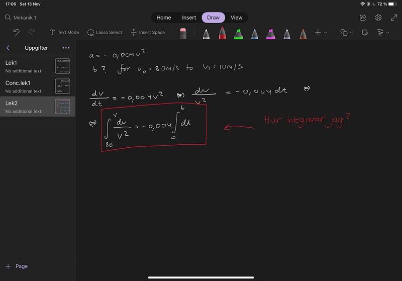 Hej, hur tar jag integralen av nedanstående uttryck (inringad i rött)?