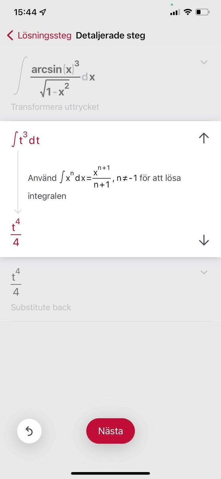 men arcsin blev ju till t jag förstår inte vad som hände i nämnaren kan vi ta det stegvis?
