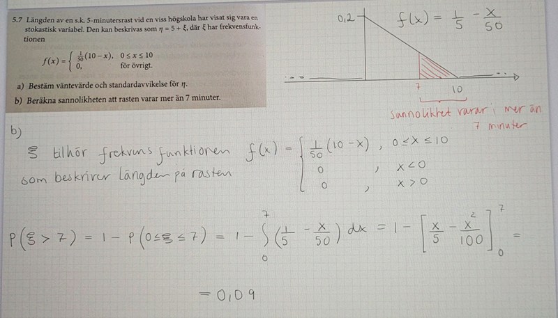 Frågan är sannolikheten att eta är mer än 7 minuter. Och eta = 5 + xi.