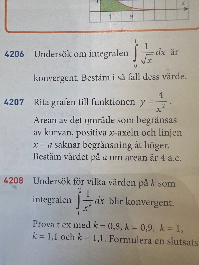 Fundera över begreppen "positiva x-axeln" och "saknar begränsning åt höger", där hittar du de korrekta begränsningarna för integralen.