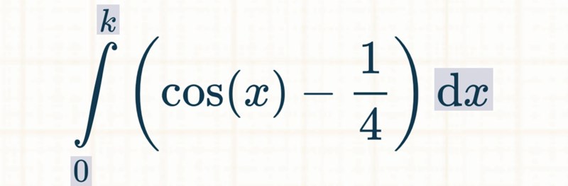 Vi har en Integral där en av gränserna (kallas k i uppgiften) är okänd.