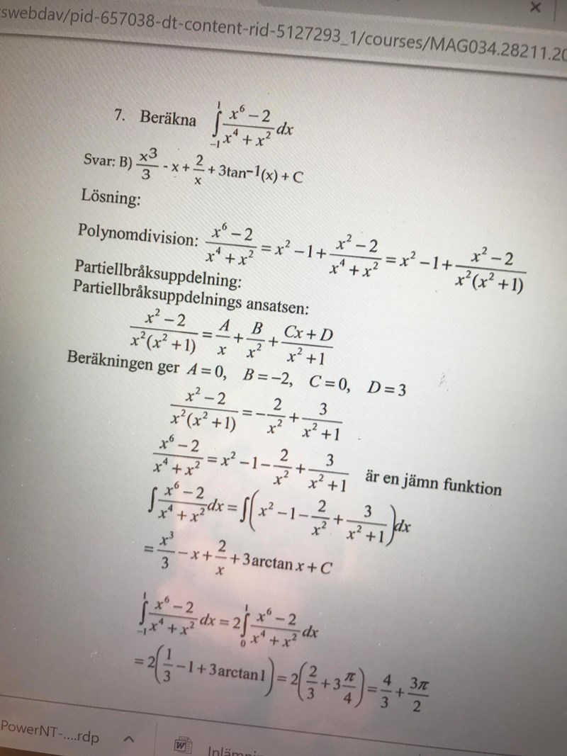 Hej jag behöver hjälp med uppgift 7. Håller inte med facits svar. Jag fick nämligen att värdet skulle bli (2/3) +2+ (3pi/2), medan de fick värdet (4/3) + (3pi/2).