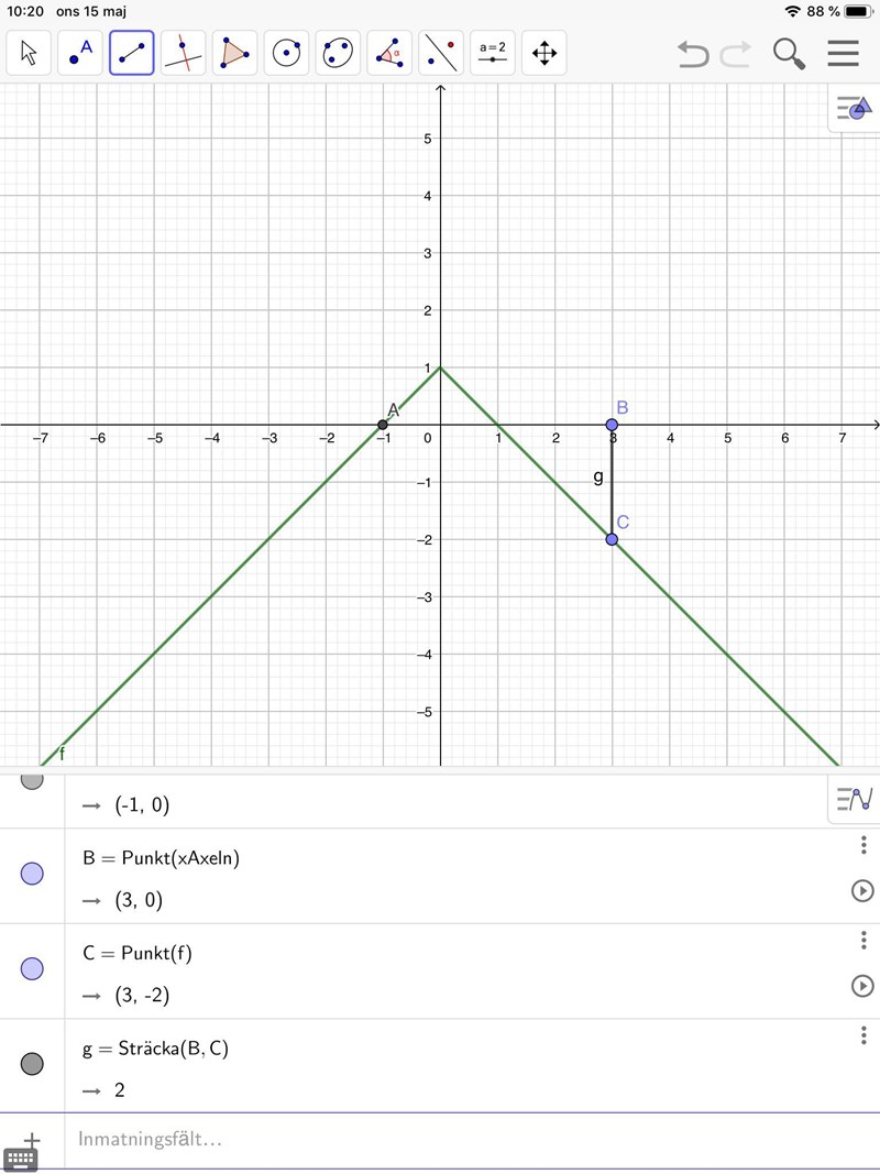 -13(1-x)dx=-10(1+x)dx+03(1-x)dx   enligt defintion av |x|= x   x0    or   -x  x<0=-2om frågan om arean jag har ritat arean över x-x  blir 1 och arean under x-x  bli 2 och summan blir|1|