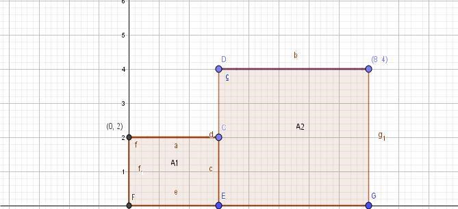 , där är integralen från 0 till 3 av den konstanta funktionen g(x) = 2 och är integralen från 3 till 8 av den konstanta funktionen h(x) = 4.