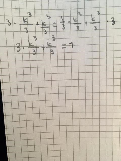 Jag skulle börja med att multiplicera båda sidor med 3 för att få bort nämnarna, så att det blir . Addera på båda sidor och förenkla, så att det blir . Dividera med två, dra tredje roten ur och du har ett exakt värde på k.