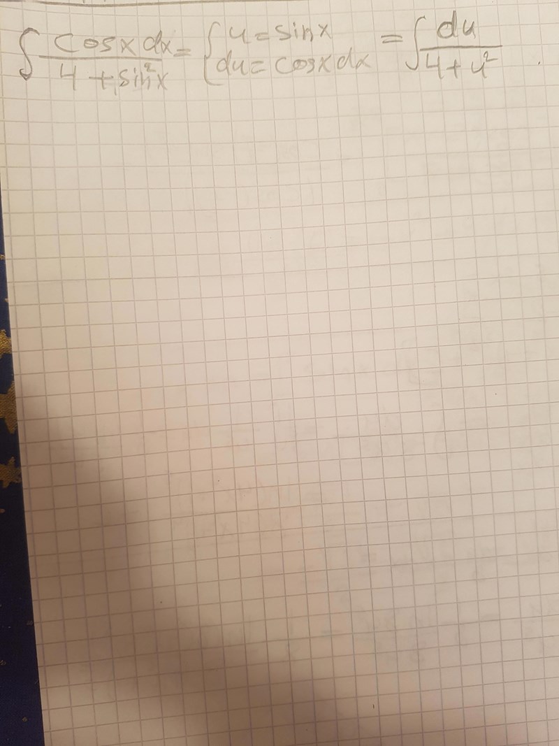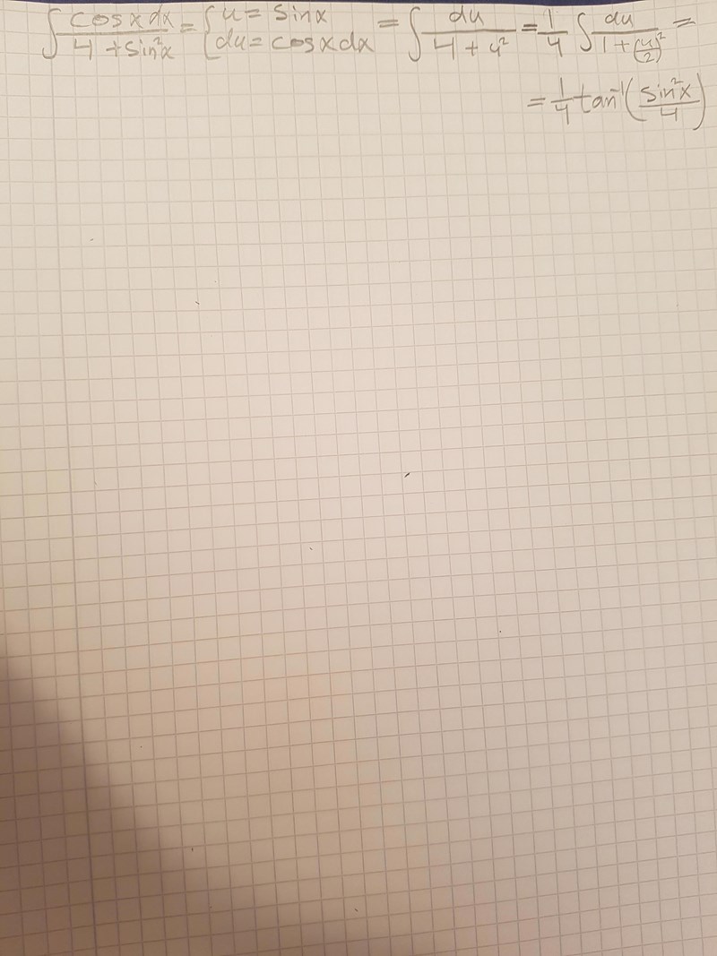 Vet inte hur jag ska vidare. Jag vet att det har något med tan^-1 att göra (jag tänker på integralen {1/(x^2+1)} ). Hur ska man tänka här?